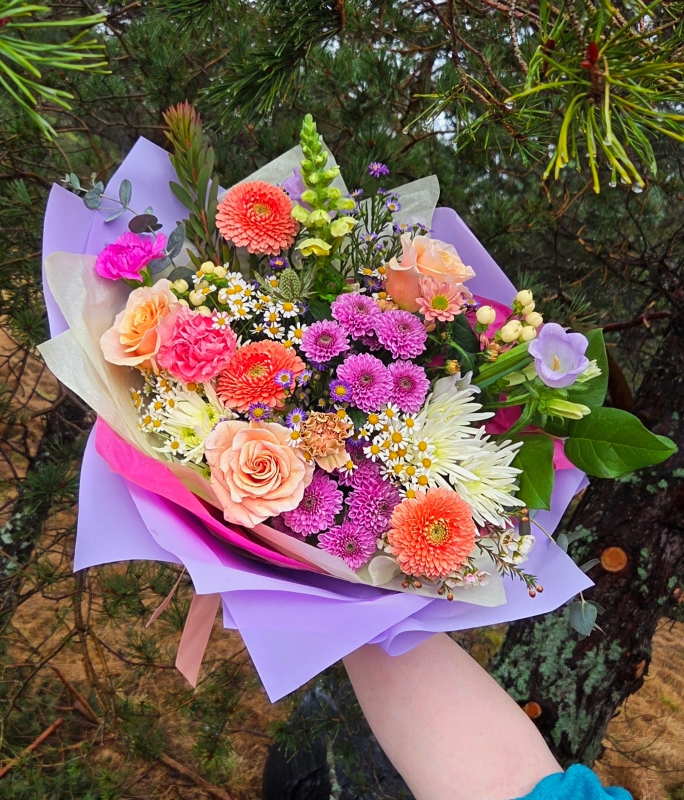 Inspired by my own Mum, 'Mammy Knows Best' is a Florist's Choice bouquet of long lasting, luxury blooms in bright pastels - pinks, peaches, purples & more.